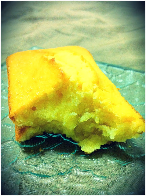 The mini loafs. Totally love the fact that the sides of the cakes separated from the tin on their own! Yippee!! I thought I'd have to use baking paper to line the tins, but now I don't have to! And I love the crack at the centre. Like a volcano or the constructive plates moving apart to reveal fresh lava. Buahahaha. I was afraid I filled the pan with too much batter (filled it like 7/8?) cos the cakes rose while in the oven almost spilling over but thankfully they didn't.