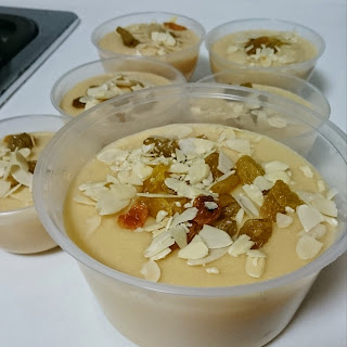 First is the sugee almond pudding.