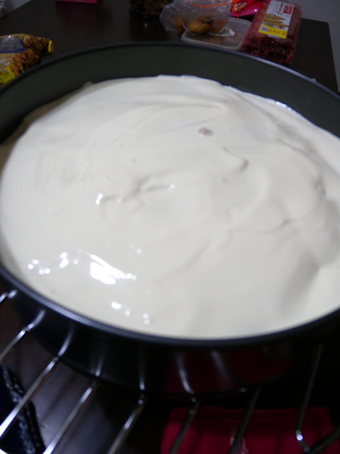 Got this recipe from Fantastic Cheesecake - Kek Keju Hebat by Alex Goh. My auntie gave it to us cos she doesn't have use for it hahahaha. Made some adaptations. For the base I used leftover digestive biscuits instead of the recipe's Oreo base. Like any digestive cheesecake base, crumble the digestive biscuits and mix with melted butter and press on the base of the springform tin. I think I used about 80 to 100g of digestives and 80g of butter. Bake in oven 170 degrees Celsius for 12 minutes and cool.