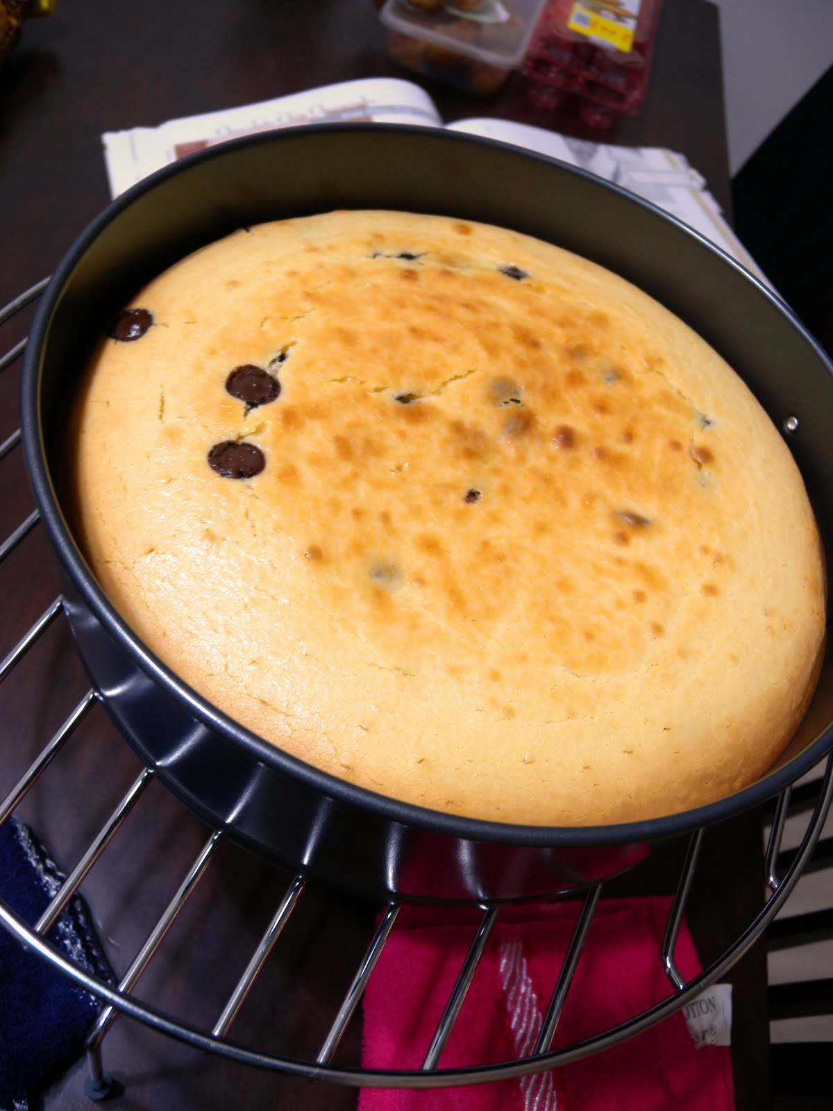 Cake's all baked! Now the final touches of chocolate chips!! Yum yum :)