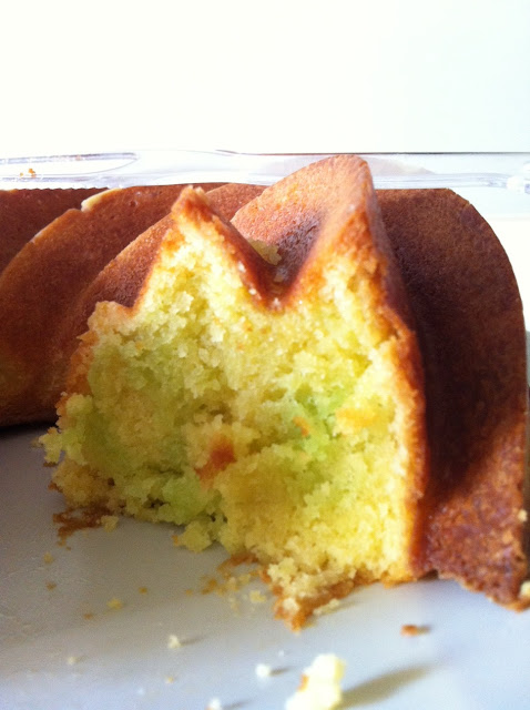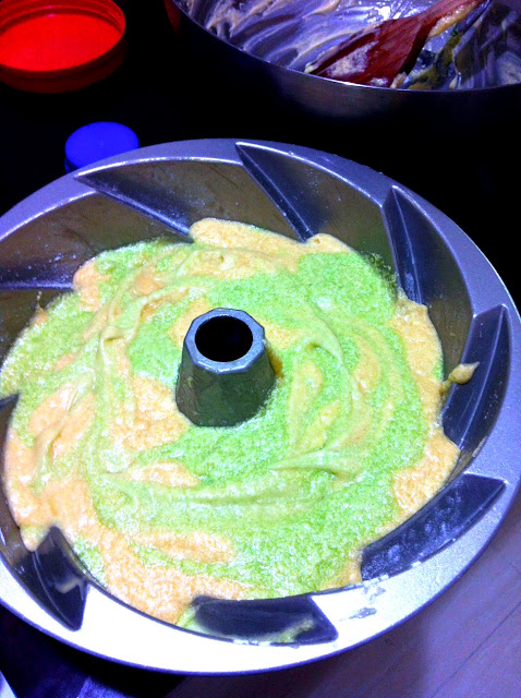 Yumyumz! Totally totally love the cake shape! But my green batter can't be seen. Sadness. Nevermind! I'll try again!