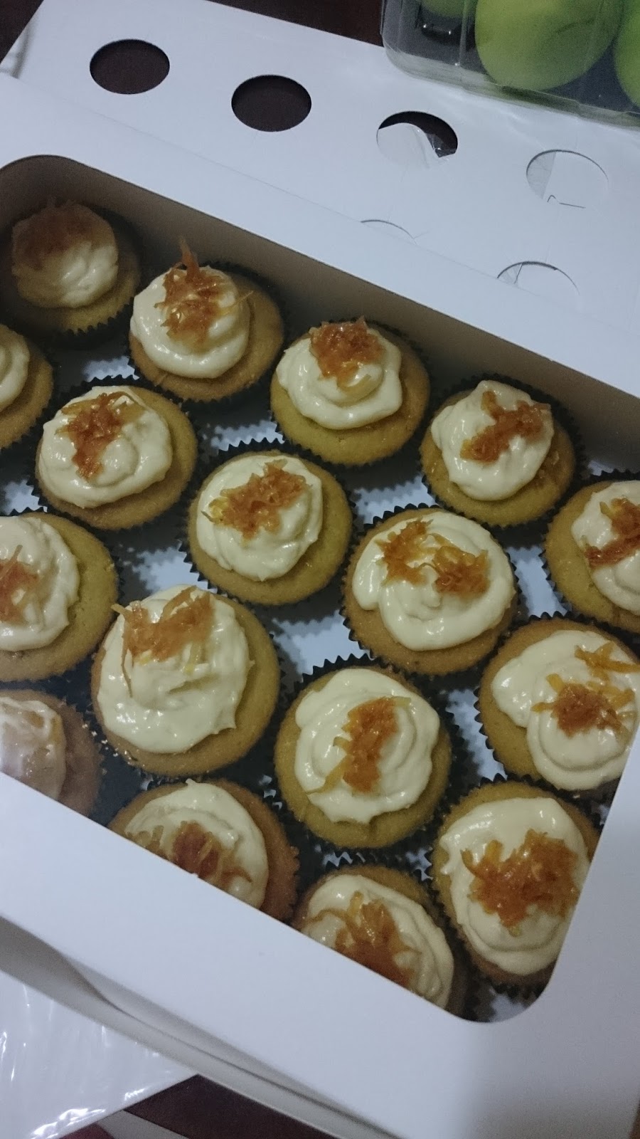 All ready! Shouldn't have put grated coconut in the frosting, hard to make the frosting look nice. I tried the Phoon Huat cream cheese which is much cheaper than Philadelphia and tastes as good! Bye Phili.